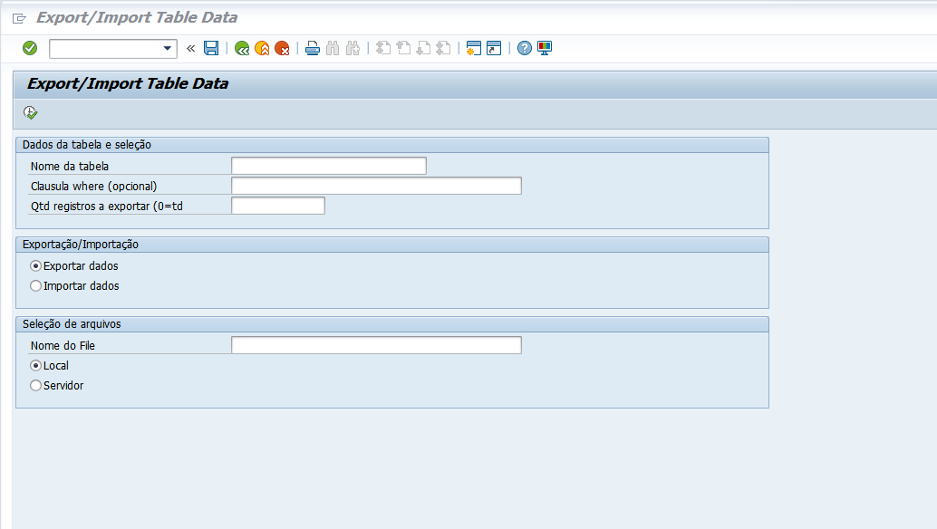 - Abra o programa ZPBCR_EXPORT_IMPORT_TABLE_DATA no SAP via SE38.